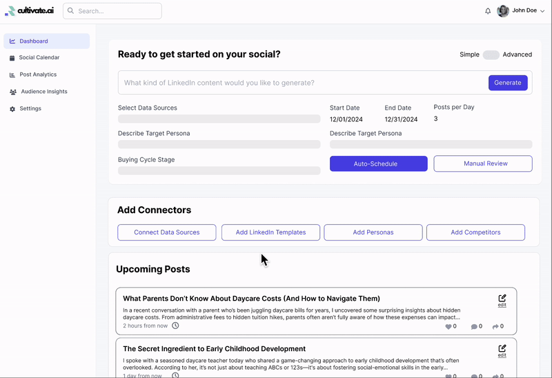 As an early user of Cultivate AI, you’re unlocking exclusive beta pricing – a fraction of what we’ll charge post-launch. Your feedback is invaluable in helping us refine and perfect the platform. As a thank-you, you’ll also secure priority discounts when we officially launch.
